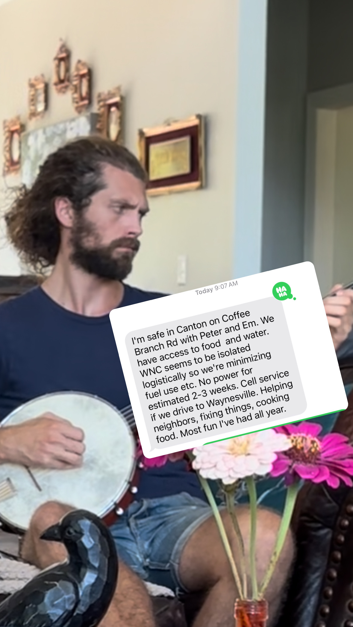 So grateful to know he and his friends are safe after Hurricane Helene hit Western North Carolina.